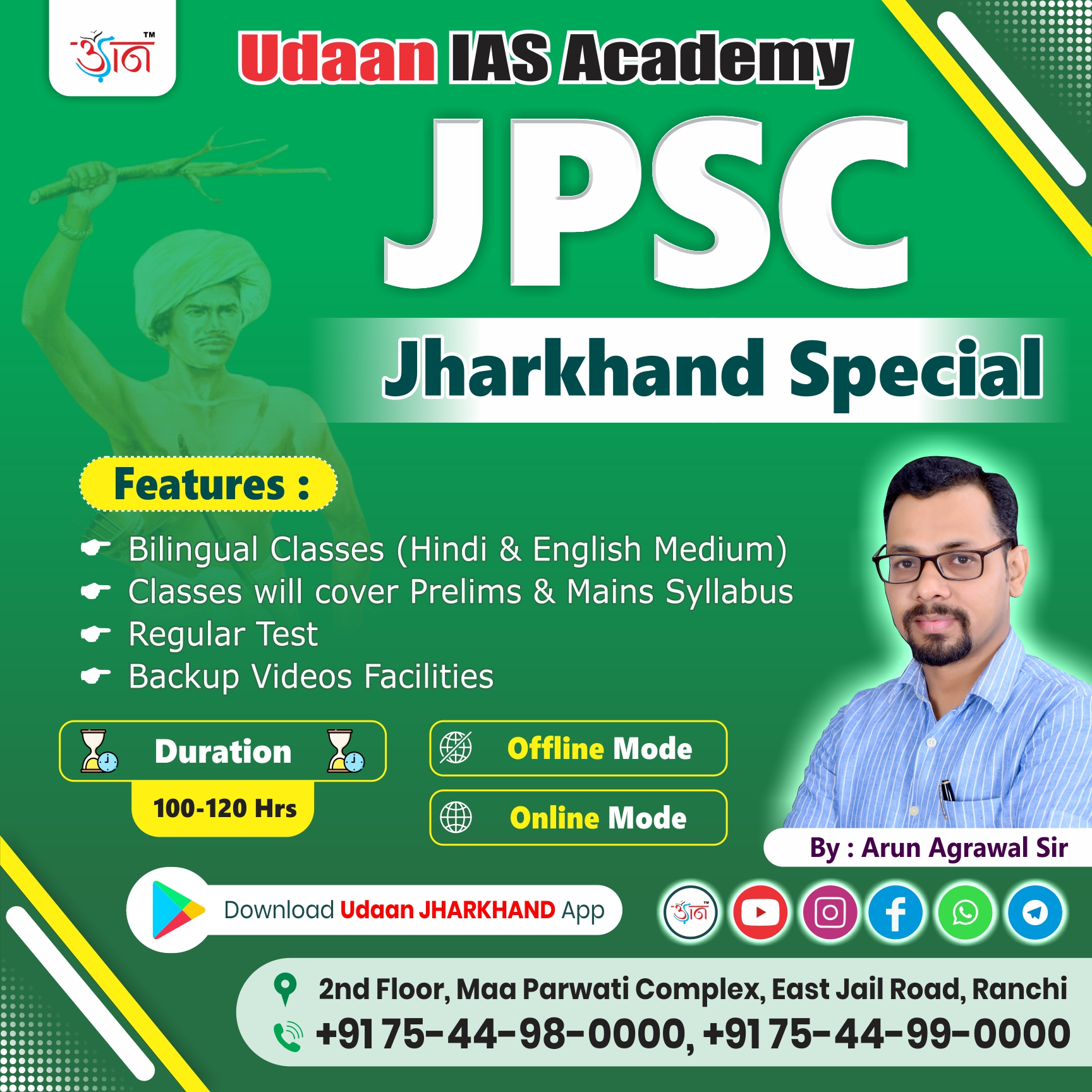 🎓 Course Name: 14th JPSC Jharkhand Special Batch ......................................................................................................... 🌟 Key Features: 🎥 Live + Recorded Classes 📋 Class Board Notes 📚 Study Material ✅ MCQs Practice ================================================== This Course Includes:- => Classes will Cover Prelims & Mains Syllabus (Jharkhand) ........................................................................................................ 🔧 Technical Support: 🛠️ For technical assistance, call 9341498244.