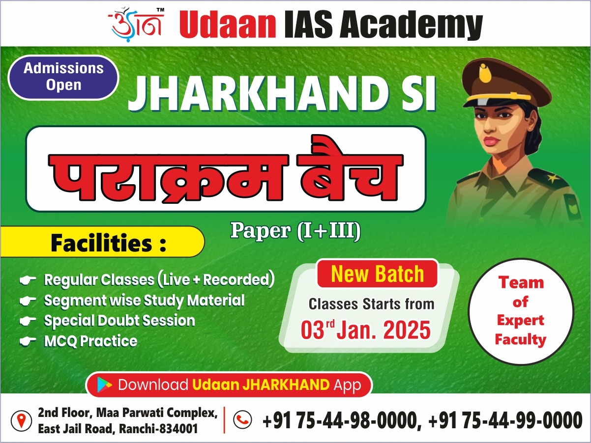 🎓 Course Name: पराक्रम बैच - Jharkhand SI (Paper-I+III) Online Course ======================================================== 🔰 We will provide you in this course : => Regular Classes => Segment wise Study Material 📚 => Special Doubt Session => MCQ Practice 📝 ======================================================== 🔰 This Course Includes:- => Paper-1 (General Hindi & General English) => Paper-3 (General Studies, Jharkhand GK, General Science, Maths, Reasoning & Computer) ☎️ For More Details Call Us At : +91 75-44-98-0000/ +91 75-44-99-0000 🛠️ If you encounter any technical problem, call our technical helpline number 9341498244. Our technical team will help you .